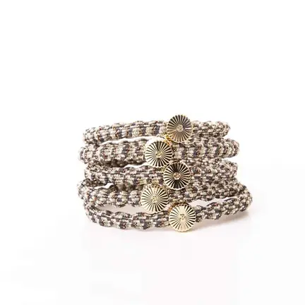 De smukke BelVu Elastikker med det smukkeste guld smykke på. De passer perfekt til en hver anledning, både som elastik og som armbånd.