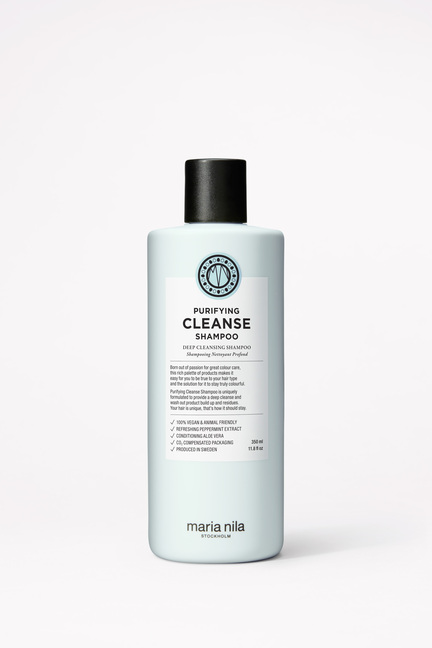 Maria Nila Purifying Cleanse Shampoo er en super effektiv og dybderensende shampoo. Den er beriget med afkølende pebermynte-ekstrakt og aloe vera, som virker opfriskende, samt plejer hår og hovedbund.