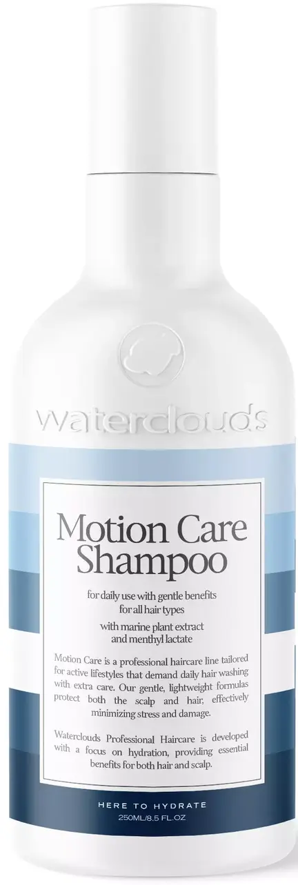 Waterclouds "Motion Care" er en shampoo til personer med en aktiv livsstil, som kræver hyppig hårvask, og med unisex dufte af bl.a. grøn te og citrus. Det er en letvægts shampoo med planteekstrakt til skånsom vask og stressreduktion. Forhindre hårfarve i at falme og har kølende effekt som beroliger hovedbunden.
