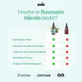 Anvendelse: Rosemary Hair and Scalp Oil er multifunktionelt og kan bruges til forskellige behandlinger af dit hår: Til dagligt brug: Påfør et par dråber i håndfladerne og fordel i hårets længder for at mindske krus og give glans. Til behandling af tør og irriteret hovedbund: Opdel håret og påfør olien i hovedbunden. Massér den grundigt ind med fingerspidserne (vær forsigtig med ikke at komme til at kradse hovedbunden for yderligere irritation). Lad olien virke i 10-60 minutter. Vask derefter håret som normalt. Til behandling af spaltede spidser: Start med at rede håret og kom derefter rosmarinolien i hårets længder og spidser. Flet gerne håret og lad den virke i minimum 1 time. Du kan sagtens bruge den som en overnight kur. Herefter vaskes håret som vanligt.
